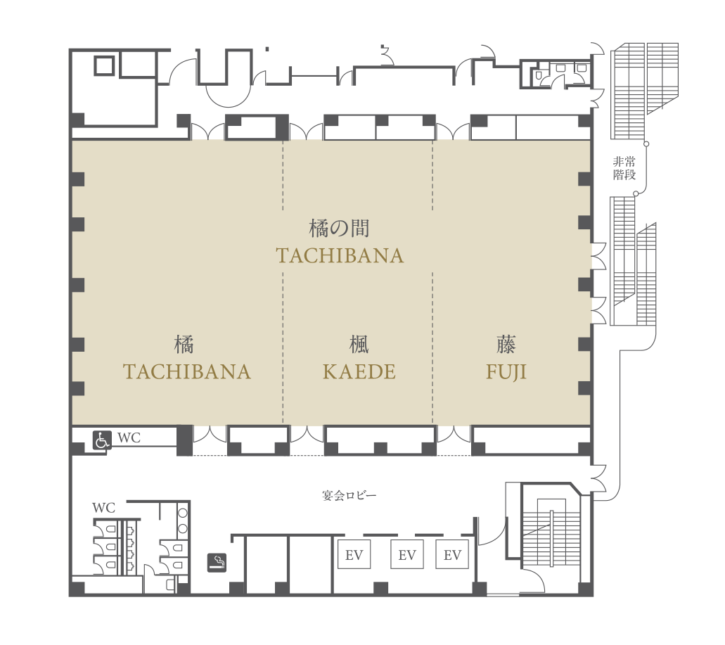 | 宴会収容人数 | 正餐:56~248名 ブッフェ:60~350名 |